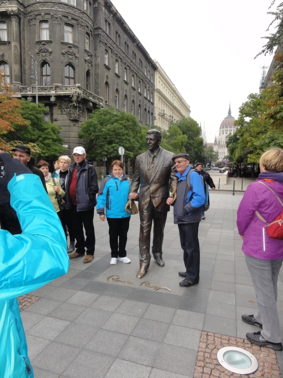 Po posiłku w czasie, którego przygrywała kapela madziarska, pojechaliśmy do hotelu na nocleg. W drugim dniu, po śniadaniu w hotelu (stół szwedzki) – jazda do miejsca parkingowego i zwiedzanie Budy i Pesztu oraz zakupy w hali targowej i sklepach „Prima”. Pojechaliśmy na wzgórze zamkowe, aby zwiedzać pałac zamkowy i pałac prezydencki. Kościół Macieja i baszty rybackie. Byliśmy świadkami zmiany warty przed pałacem prezydenckim. Podziwialiśmy gmach parlamentu, Węgierską Akademię Nauk, pomnik Imre Nagya, Plac Wolności oraz Bazylikę Św. Stefana. Duże wrażenie wywarła na nas wystawa na placu przy parlamencie poświęcona rocznicy Węgierskiego Października 1956 Roku. Sporą atrakcją jest niewątpliwie rejs wieczorny po Dunaju. Zgadzam się z Panią przewodnik, że zwiedzając Budapeszt koniecznie trzeba przeznaczyć w tym celu jeden wieczór. Wszystkie zwiedzane miejsca w dzień są po zmroku wspaniale podświetlone. Zamki, Kościoły, Parlament, mosty na Dunaju i wiele innych obiektów przyciągają wzrok różnokolorowymi światłami. Po rejsie jeszcze wjazd autokarem na wzgórze Gellerta gdzie oglądamy panoramę Budapesztu nocą. Wzgórze swą nazwę zawdzięcza biskupowi Gellertowi, który właśnie tutaj miał zostać zamordowany przez pogan (według legendy zrzucono go ze szczytu w drewnianej beczce). Pełni wrażeń jedziemy na nocleg do hotelu.